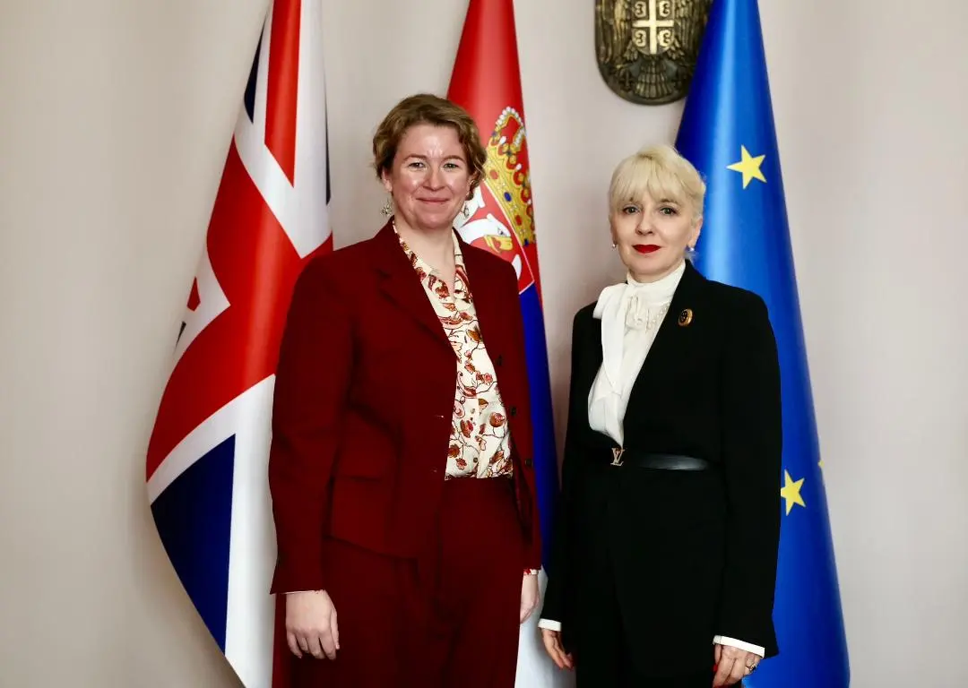 Министарка унутрашње и спољне трговине и Комесар за EXPO 2027 Београд Јагода Лазаревић разговарала је данас са Кери Морган, трговинском изасланицом Владе Уједињеног Краљевства задуженом за Европу и амбасадором Уједињеног Краљевства у Београду Едвардом Фергусоном.