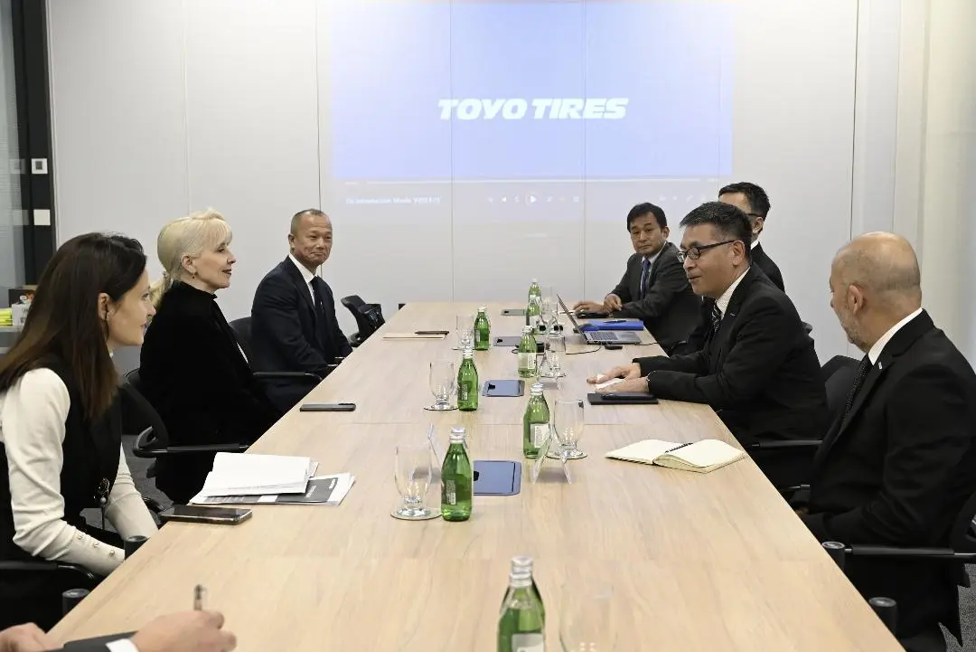 На састанку са руководством "Toyo Tire", разговарано je о њиховом досадашњем пословању у Србији, плановима за наредни период као и актуелним изазовима на светском тржишту, с обзиром да је извоз из Србије кључни део пословања "Тоуо Тire" у Србији.