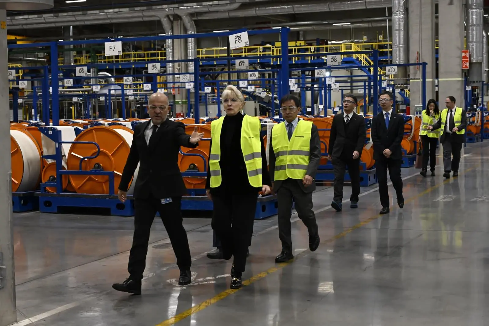 Током обиласка производног погона, генерални директор г.Томохиса Јамагући и директор фабрике г. Ајкут Гидерги упознали су министарку Лазаревић са детаљима производње и савремене опреме, али и плановима за изградњу Иновационог центра у оквиру постојеће парцеле у Инђији, који би служио као простор за развој нових технологија, унапређење материјала, производних процеса и јачање сарадње са партнерима и академском заједницом.