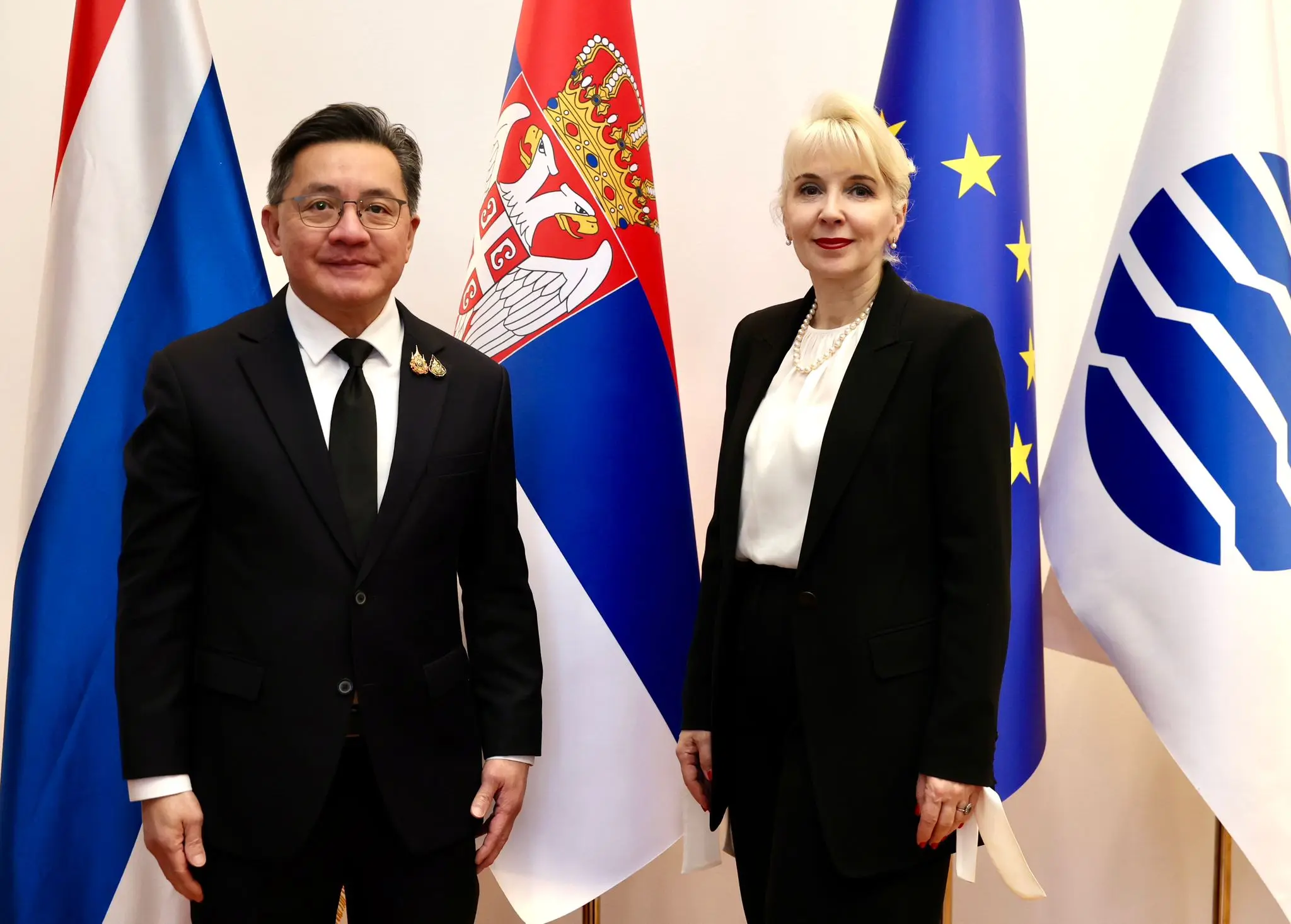 Комесар EXPO 2027 Београд и министарка унутрашње и спољне трговине Јагода Лазаревић састала се са амбасадором Тајланда у Републици Србији на нерезиденцијалној основи, са седиштем у Атини, Њ. Е. Сатаном Касемсан На Ајудaјoм, као и директором Трговинске канцеларије Тајланда у Будимпешти Тумом Нијемскулом.