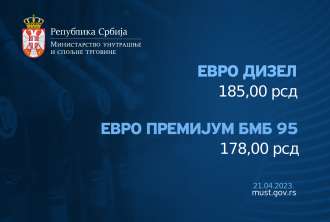 ОБАВЕШТЕЊЕ О НАЈВИШОЈ МАЛОПРОДАЈНОЈ ЦЕНИ ДЕРИВАТА НАФТЕ EVRO DIZEL И EVRO PREMIJUM BMB 95