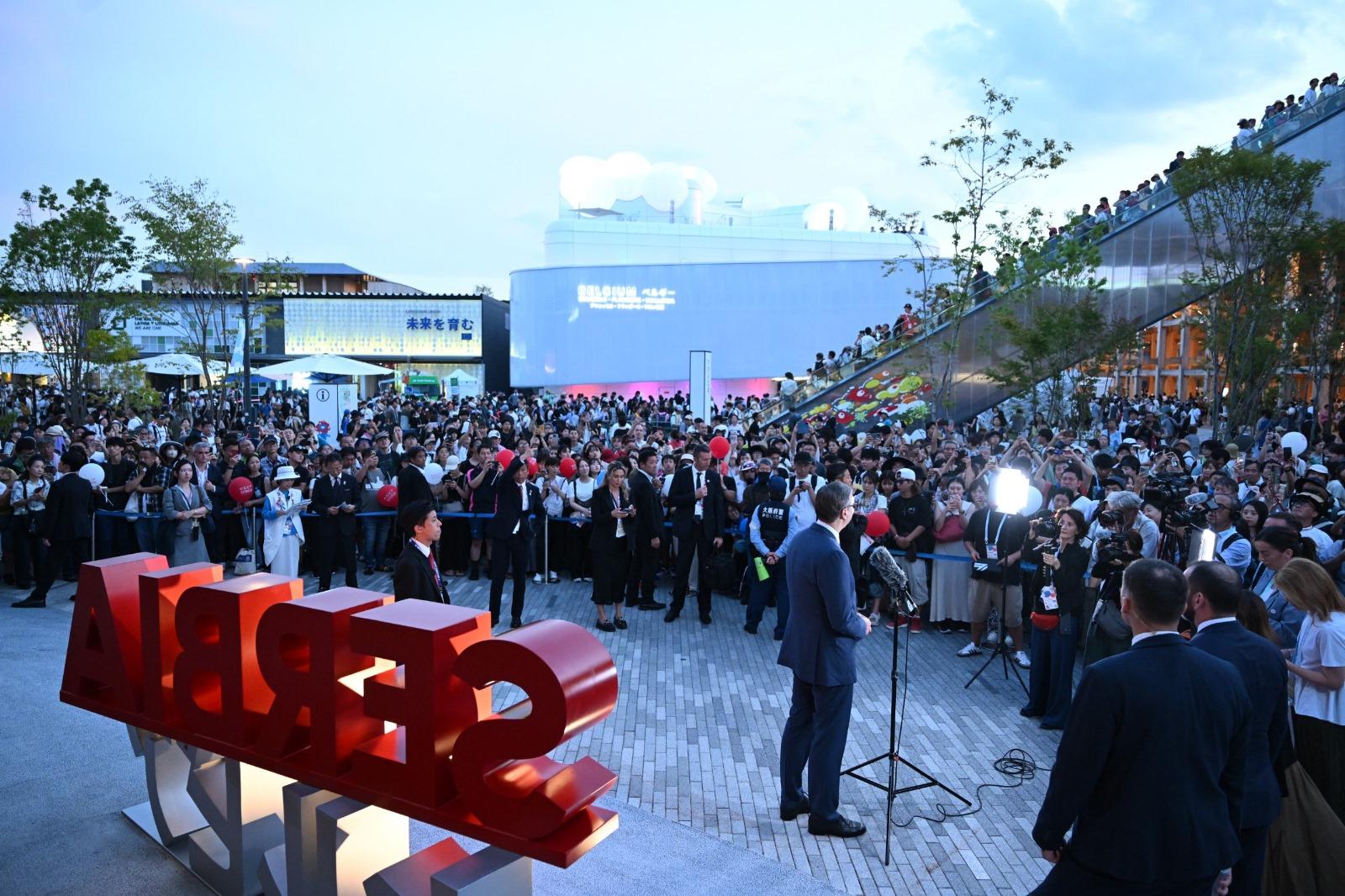 "Са огромним поносом могу да кажем да је српски павиљон у Осаки посетило више од 880.000 људи. За нас тај број није само статистика – представља 880.000 прилика да Србија представи свој идентитет, своје идеје и своју визију. Сваки гост је доказ да Србија има шта да понуди свету – своју креативност, иновативност и потенцијал", рекао је Вучић.