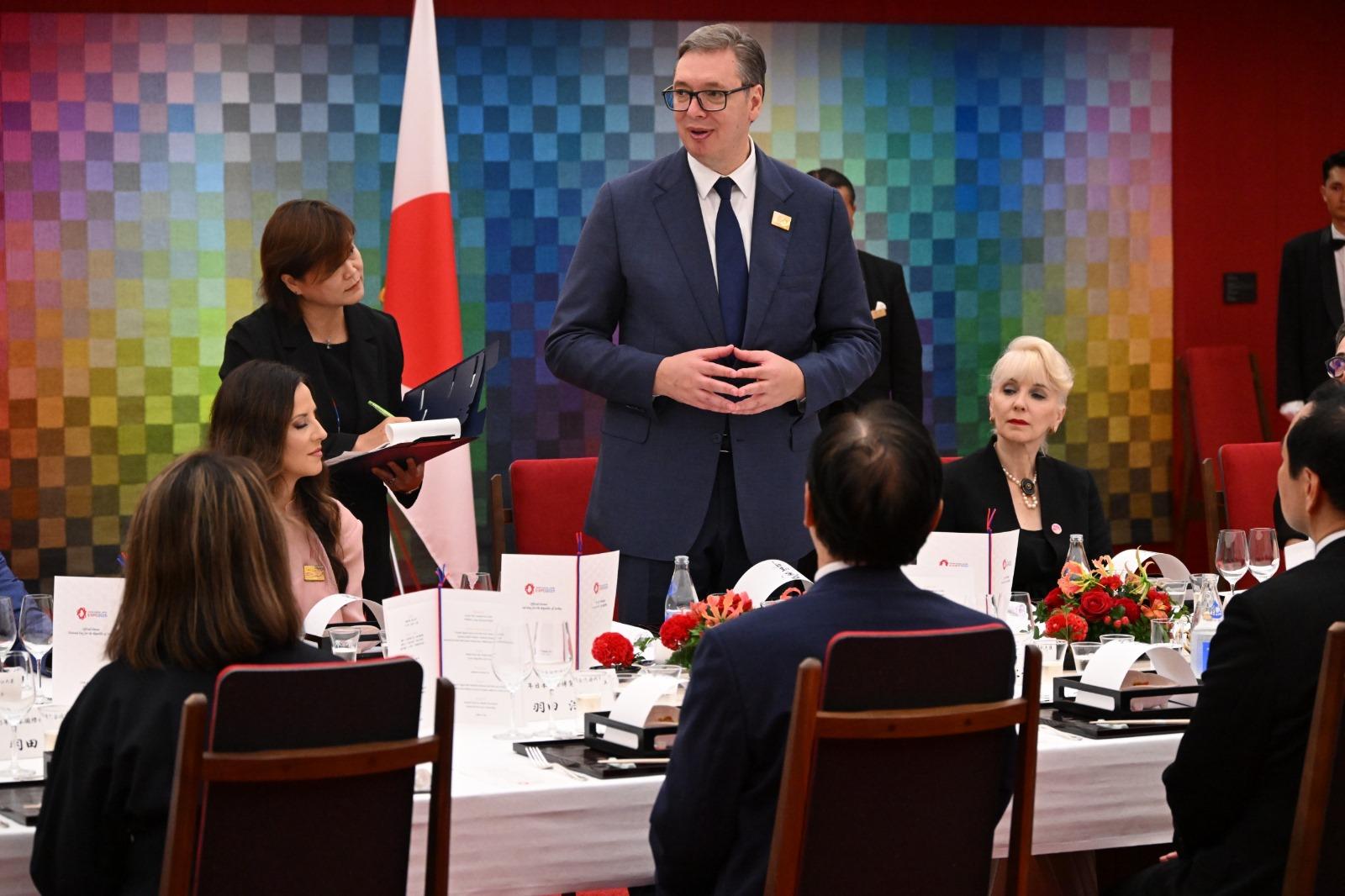 Председник Вучић је навео и да јапанске компаније, доносећи иновације, најсавременију технологију и изврсност, стварају радна места и отварају нове прилике за наше људе.