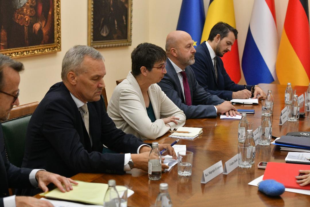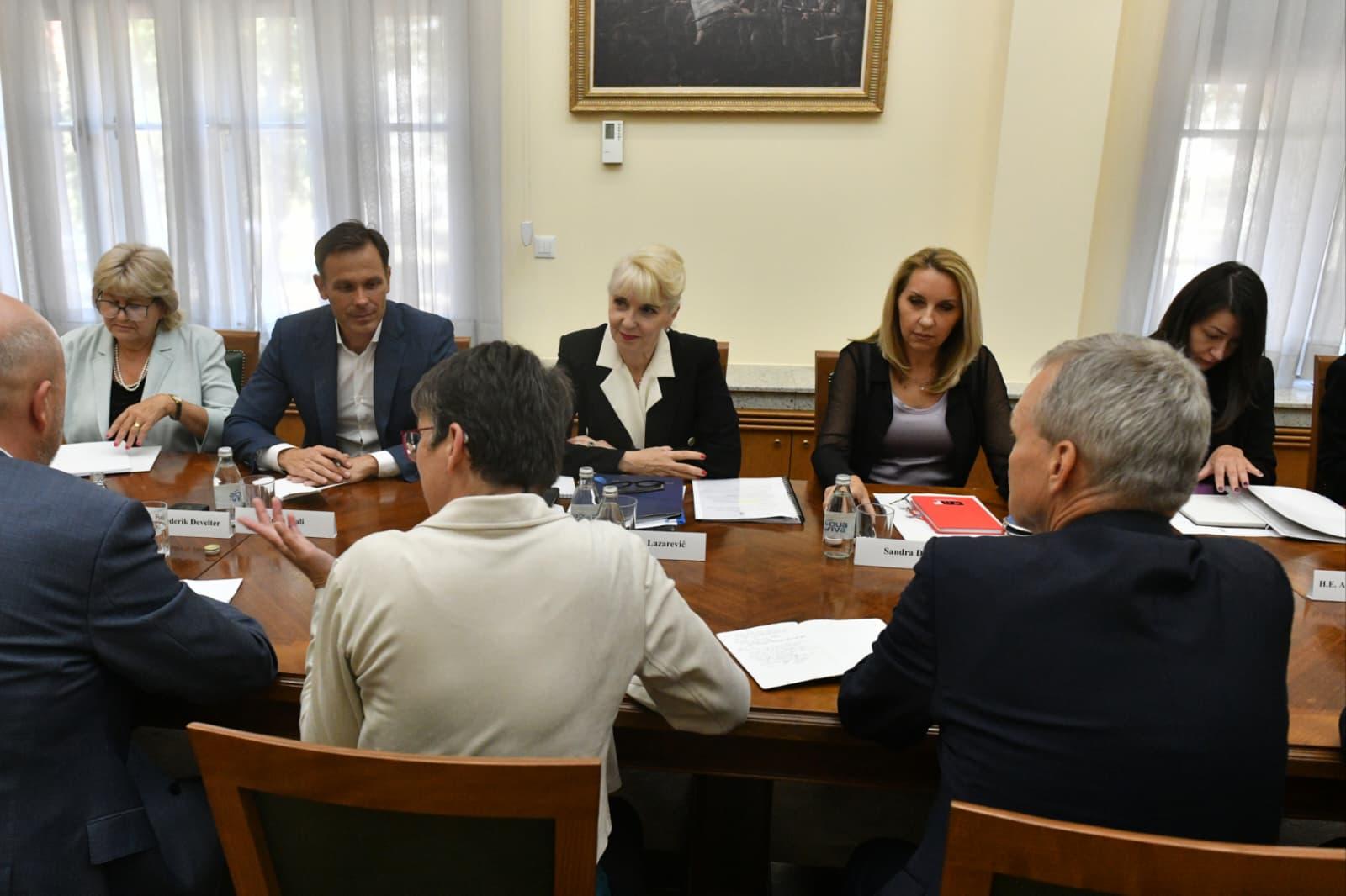 Састанку у влади су присуствовали Њ.Е. Анке Конрад, амбасадорка Савезне Републике Немачке, Њ.Е. Мартијн Елгерсма, амбасадор Краљевине Холандије, Њ.Е. Фредерик Девелтер, амбасадор Краљевине Белгије, Њ.Е. Андреас фон Бекерат, амбасадор и шеф Канцеларије ЕУ у Републици Србији, Андреас Хердт, шеф економског одељења, Савезна Република Немачка и Катарина Мотошкова, шеф Одељења за европске интеграције, Канцеларија ЕУ у Републици Србији.