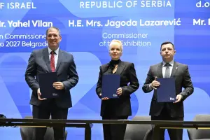 Срдачан и конструктиван састанак министарке унутрашње и спољне трговине и Комесара ЕXPO 2027 Београд Јагоде Лазаревић са амбасадором Републике Узбекистан Ојбеком Шахавдиновим.