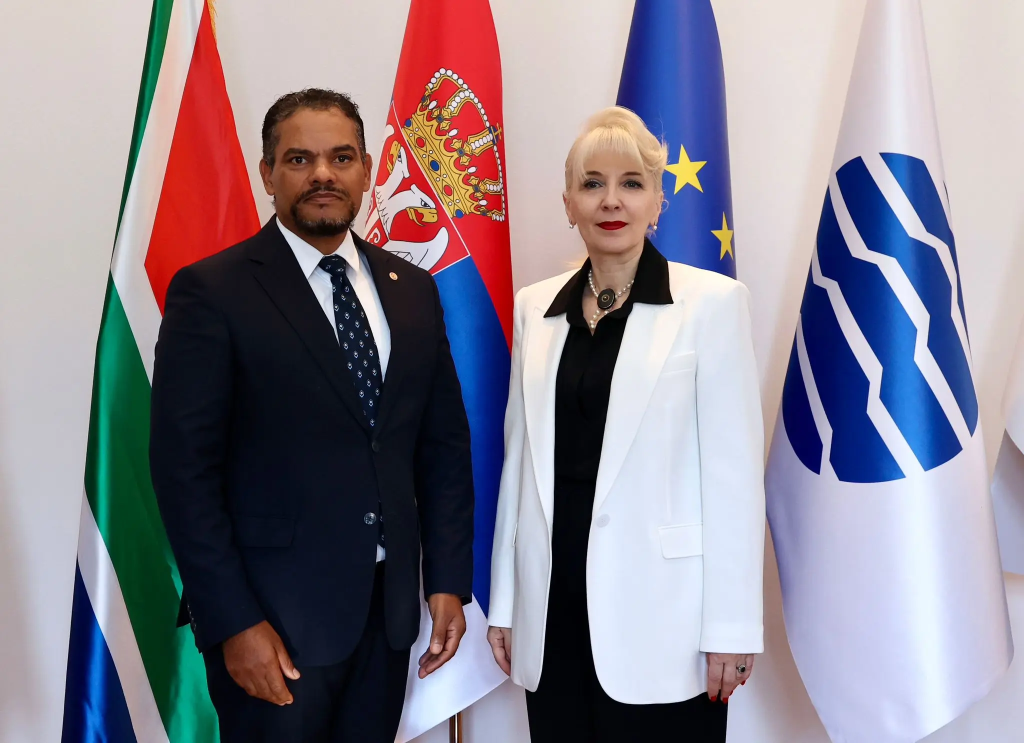 Садржајан и срдачан састанак министарке унутрашње и спољне трговине и Комесара за EXPO 2027 Београд Јагоде Лазаревић са делегацијом Републике Јужне Африке коју предводи Алвин Ботес, заменик министра међународних односа и сарадње ЈАР о учешћу на ЕХРО 2027 Београд.