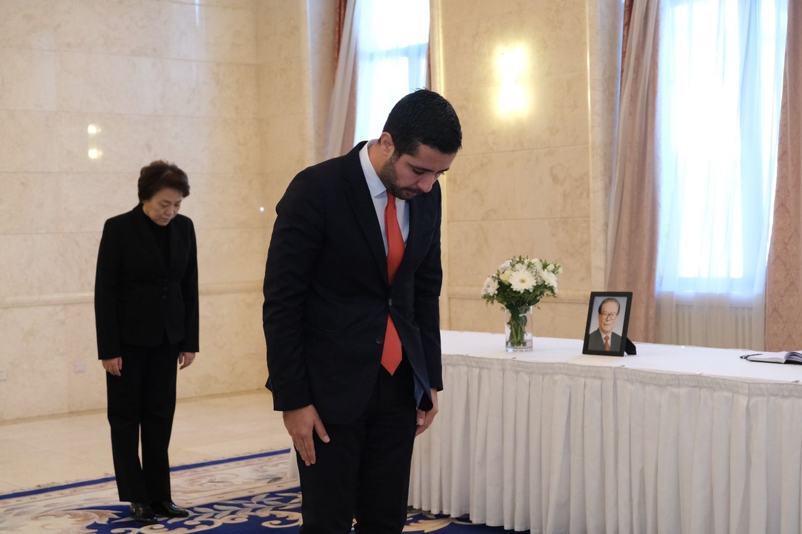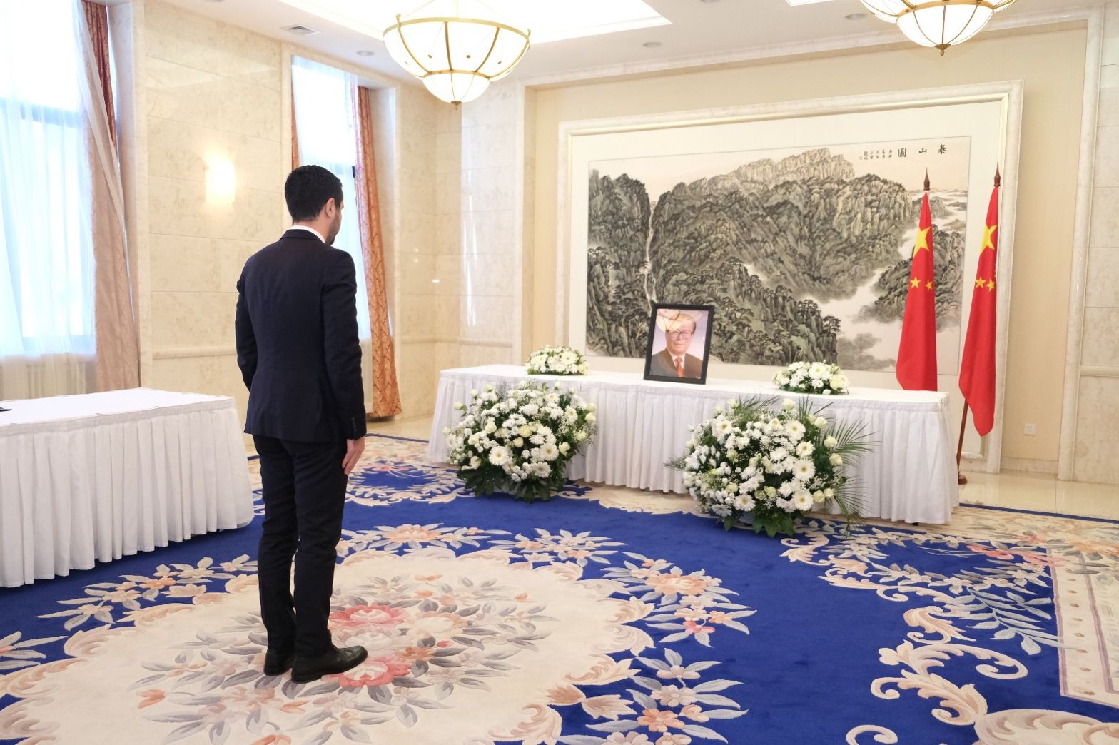 Министар трговине у Влади Републике Србије и председник Мешовите међувладине комисије за економску сарадњу са НР Кином, Томислав Момировић, уписао се данас у књигу жалости у амбасади Народне Републике Кине поводом смрти Ђианг Цемина.